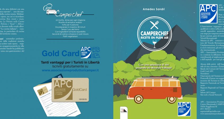 In questo mio spazio, sono molto lieto di segnalarVi che il libro “Camperchef – Ricette en plein air”, a cura di Amedeo Sandri e Maurizio Falloppi, andrà presto in ristampa con il contributo di APC. Si tratta di un esemplare compendio che fornisce una miriade di spunti agli equipaggi e alle famiglie per cucinare come veri Masterchef nelle cucine non certo “da ristorante stellato” che si hanno a disposizione su un camper. Il tutto va ad inserirsi perfettamente nella “mission” reale del turismo ricreazionale, cioè rappresentare un vero e proprio jolly per chi si mette in viaggio, perché permette di decidere anche all’ultimo momento le mete e le destinazioni che meglio si adattano alle esigenze del turista. Proprio in funzione di questo, di quell’improvvisazione che è parte integrante e innata della vita on the road a bordo di un camper, assume grande importanza e curiosità un simile libro, in cui i protagonisti sono ingredienti facilmente reperibili ovunque, naturalmente a seconda della stagionalità, e che prevedono, come strumenti di cottura e preparazione, solo l’utilizzo di frullatore e pentola. Le ricette sono molto semplici, dalla preparazione veloce e tengono conto di tutti i fattori particolari che caratterizzano le cucine di camper e caravan.