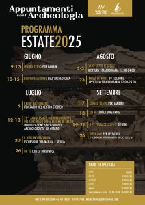 Per tutta l’estate 2025, i Musei Civici di Velletri propongono un ricco calendario di eventi pensati per tutte le età. Dalle Giornate Europee dell’Archeologia al Centro estivo per bambini, passando per itinerari tematici, ogni appuntamento è un’occasione per vivere la cultura in modo coinvolgente. Per saperne di più potete consultare la locandina qui sotto.
