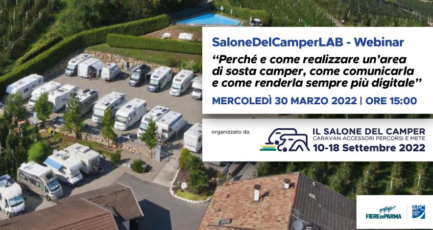 Il Salone del Camper Lab propone per il 30 marzo alle 15 un webinar della durata di un’ora con l’obiettivo di fornire informazioni utili per gli Amministratori pubblici e gli Imprenditori privati nella realizzazione di un’area di sosta camper.